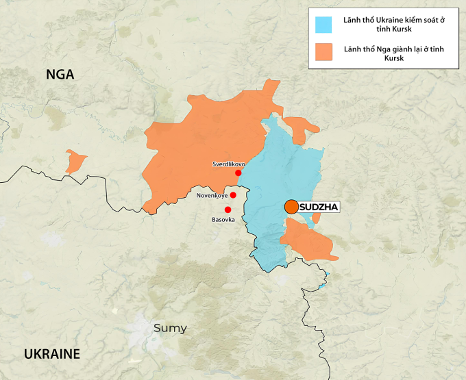 Truyền thông Nga dẫn lời Yuri Podolyaka, blogger quân sự ủng hộ Điện Kremlin có hơn ba triệu người theo dõi trên Telegram, cho biết lực lượng Nga đã tiến vào tỉnh Sumy từ Sverdlikovo, ngôi làng mà họ vừa tái kiểm soát tại tỉnh Kursk. Binh sĩ Nga sau đó tiến tới làng Novenkoye ở tỉnh Sumy và nhiều khả năng sẽ hướng tiếp đến làng Basovka.