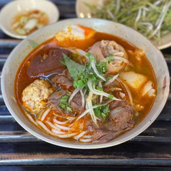 Bún bò Gánh ở đường Lý Chính Thắng, quận 3 là quán bún bò có tiếng ở TP HCM trong nhiều năm qua. Ở đây bán món chính là bún bò với đủ thành phần ăn kèm như chả tôm, chả cua, gân, giò, nạm... với giá 58.000 - 68.000 đồng/phần chưa tính phí ship. Hương vị bún bò Huế ở quán thích hợp với người ăn nhạt, không quá dậy mùi mắm ruốc. Điều khác biệt dễ thấy là sợi bún to, trong khi người sành ẩm thực Huế thích sợi bún nhỏ của bản gốc hơn. Ảnh: @shige076/Instagram