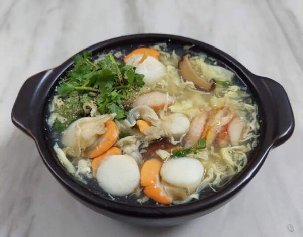 Súp cua ở Xí Muội Quán trong hẻm nhỏ trên đường Bùi Đình Túy, quận Bình Thạnh bắt đầu mở bán lại từ ngày 18/9, trên các app đặt thức ăn, hơn 1.000 người dùng đánh giá 4,7/5 về chất lượng món ăn tại đây. Súp cua vừa miệng, nhiều nguyên liệu, có độ sệt vừa phải, phần ăn đóng gói mang về sạch sẽ. Giá mỗi phần chưa tính ship từ 25.000 đến 69.000 đồng cho các món súp cua thường, súp cua mực, súp cua óc heo, trứng bách thảo, hàu sữa, tôm, trứng gà non, bào ngư... Ảnh: Xí Muội Quán