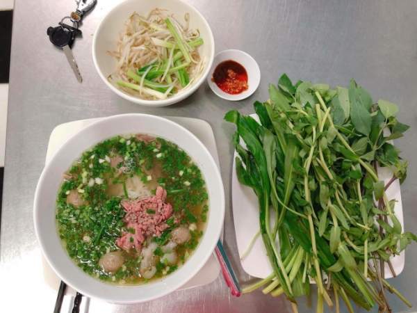 Phở Hạnh (Phở Đức cũ) trên đường Huỳnh Mẫn Đạt, quận 5 là quán phở gia truyền hơn 30 năm được lòng nhiều thực khách tại TP HCM nhờ nước lèo ngon từ xương hầm 8-10 tiếng, nước béo thơm không ngấy, thịt bò tươi và nước chấm sa tế nhà làm. Hiện quán bán 3 món phở chính là phở tái, phở viên, và phở tái viên đồng giá 45.000 đồng/phần, thêm tiết hột gà giá 15.000 đồng, món chưa tính phí ship. Ảnh: Phở Hạnh