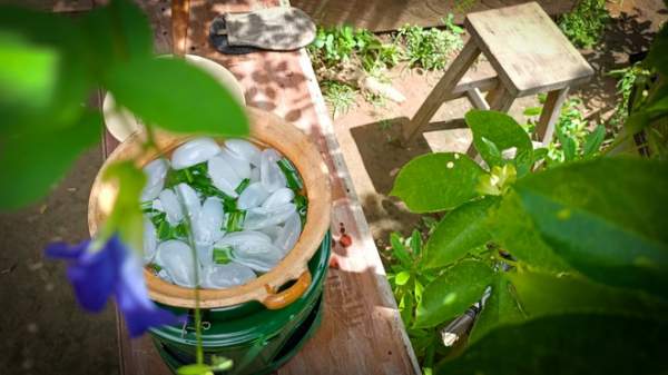 Bảo quản dừa nước trong hũ ăn dần, chỉ cần thêm đá là có ngay món giải nhiệt cực đã (Ảnh: Phương Oliver).