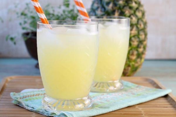 Cho nước chanh, nước dứa và nước lọc vào cốc khuấy đều. Thêm lượng siro đường thích hợp cho vừa khẩu vị. Thêm đá là có thể thưởng thức.