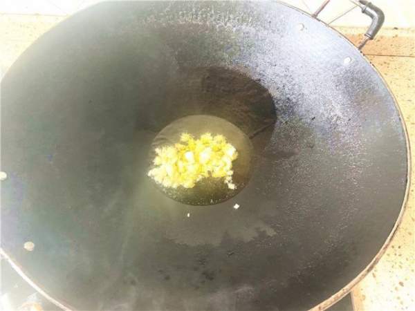 Cho một ít dầu ăn vào chảo, sau đó đun nóng, đổ tỏi băm vào phi thơm.