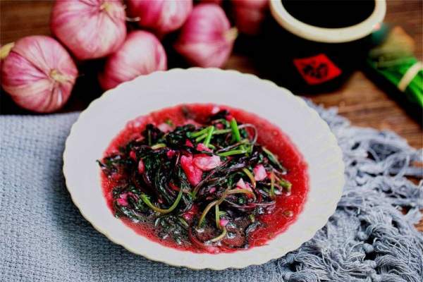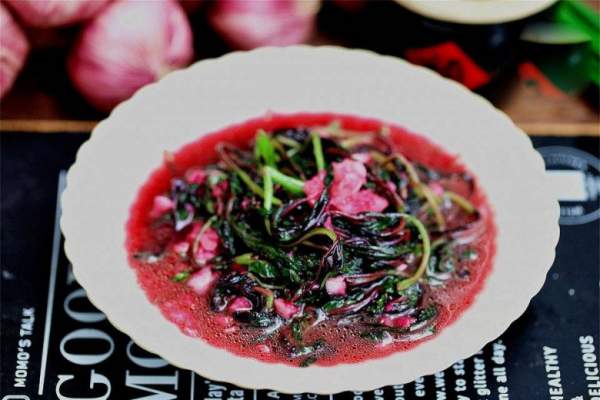 - 1 nắm rau dền đỏ, 2 củ tỏi, ít dầu ăn hoặc mỡ lợn.