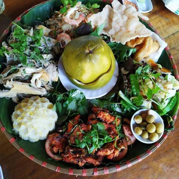 Du khách dễ dàng tìm và thưởng thức gà hấp bưởi ngay tại vườn bưởi Tân Triều (Ảnh: @hieu.ricky)