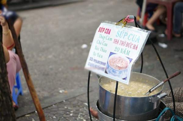 Gọi là “quán” nhưng chỉ là một chiếc xe đẩy với vài chiếc ghế nhựa, thậm chí không có bàn, nhưng món súp cua ở quán đã nổi tiếng khắp thành phố.