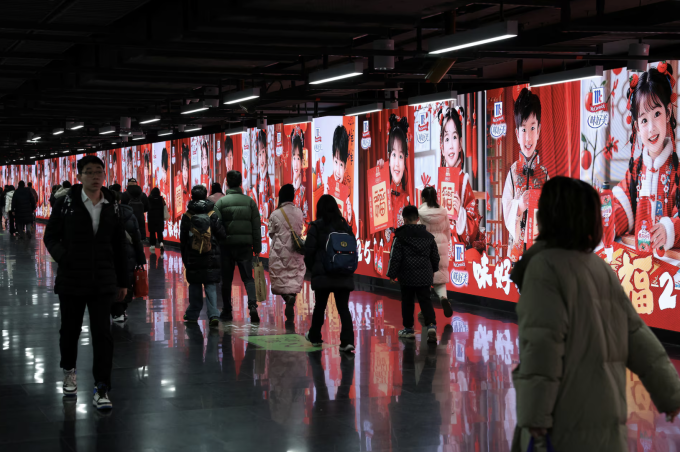 Mọi người đi bộ trước bảng quảng cáo trong một ga tàu điện ngầm ở Thượng Hải, Trung Quốc, ngày 16/1. Ảnh: REUTERS/Go Nakamura