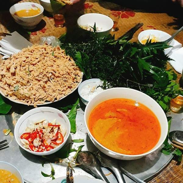 Nhắc đặc sản đất Thái Bình mà không nhớ món bún bung ăn cùng hoa chuối, chân giò sẽ là thiếu sót vô cùng lớn (Ảnh: @hang_lee_1405)