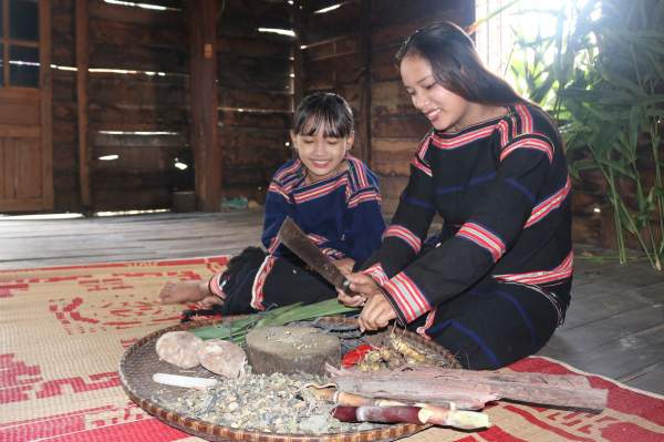 "Ngày trước, nguyên liệu làm men rượu rất dễ tìm, chỉ cần men theo bìa rừng là có đủ các loại cây mang về, ngay nay thì hơi khó", bà Nay H’ Lơm chia sẻ.