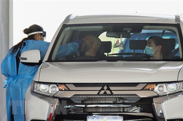 Nhân viên y tế lấy mẫu xét nghiệm COVID-19 cho người dân tại Perth, Australia. (Ảnh: AFP/TTXVN)