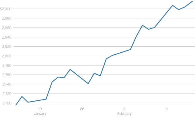 Chốt phiên giao dịch 13/2, giá vàng thế giới giao ngay tăng 24 USD lên 2.927 USD. Trong phiên, giá có thời điểm chạm 2.931 USD, tiến sát mức đỉnh 2.942 USD xác lập đầu tuần này.