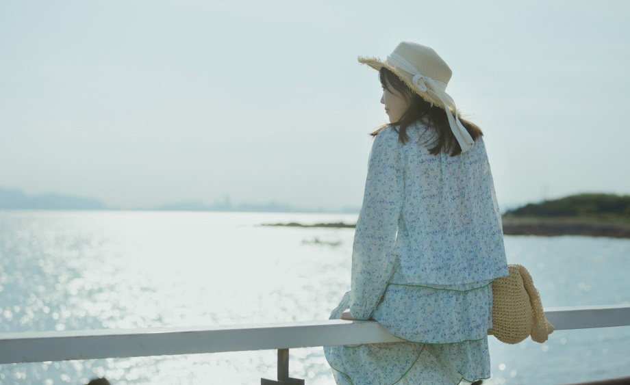 Biển đẹp quá, nhưng cũng đáng sợ quá. Cô nghĩ thế rồi khẽ cụp mi. Ánh sáng ngoài khung cửa hắt vào, vẽ lên gương mặt cô một đường ranh mảnh: giữa ánh sáng và bóng tối, giữa bình yên và bất an. Và trong lòng cô, biển vẫn ngân lên, sâu lắng, không lời.