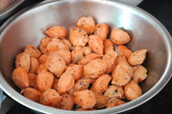 Sa tế ớt của quán khiến tôi ấn tượng. Màu sắc bắt mắt, mùi thơm và vị cay hấp dẫn. Bà Tuyết cho biết thành phần sa tế gồm hành phi, ớt Huế, tóp mỡ, sả và dầu ăn.