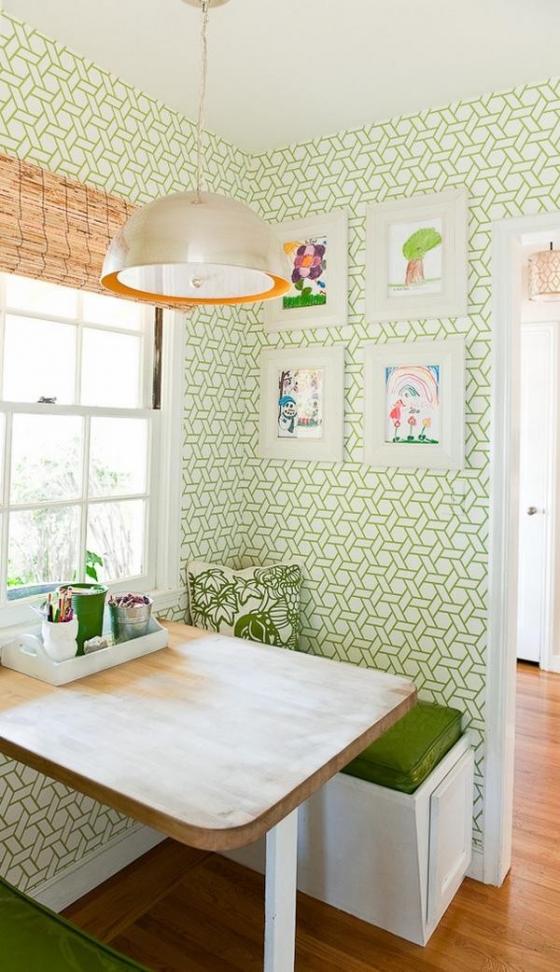 Có thể nói, trong không gian sống “khiêm tốn” thì một góc nhỏ thôi cũng rất đáng giá. Vì thế, đừng lãng phí chúng mà hãy tận dụng để tạo cho mình một khu vực ăn uống nhỏ xinh. Chẳng hạn như bên khung cửa sổ là bàn ăn với hoa tươi lãng mạn; biết cách tạo sự phân vùng khéo léo bằng việc sử dụng giấy dán tường nổi bật; hay phối hợp các gam màu pastel dịu nhẹ để góc nghỉ ngơi đọc sách cũng trở thành khu vực ăn uống thoải mái.