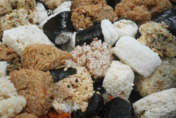 Cơm nắm dư thừa bị vứt bỏ tại JFEC, tỉnh Kanagawa, Nhật Bản. Ảnh: Mainichi