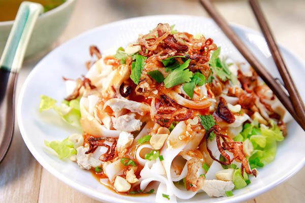 Khi ăn bạn sẽ cảm nhận được nước sốt chua chua, ngọt ngọt, cay cay hòa quyện với bánh phở tươi mềm cực kỳ cuốn hút.