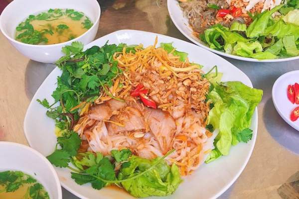 Món phở chua được ăn kèm với rau tươi, thịt xá xíu, khoai lang chiên, đậu phộng rang, thêm nước mắm tỏi ớt không chỉ thơm ngon mà còn vô cùng hấp dẫn.