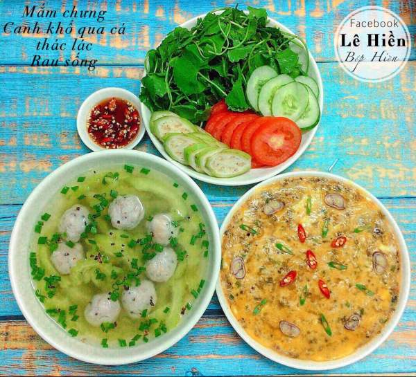 Mắm chưng - Canh khổ qua cá thác lát - Rau sống