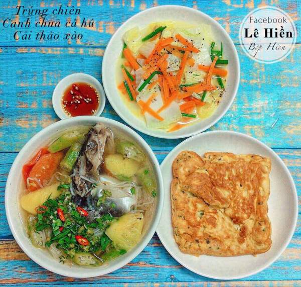 Trứng chiên - Canh chua cá hú - Cải thảo xào