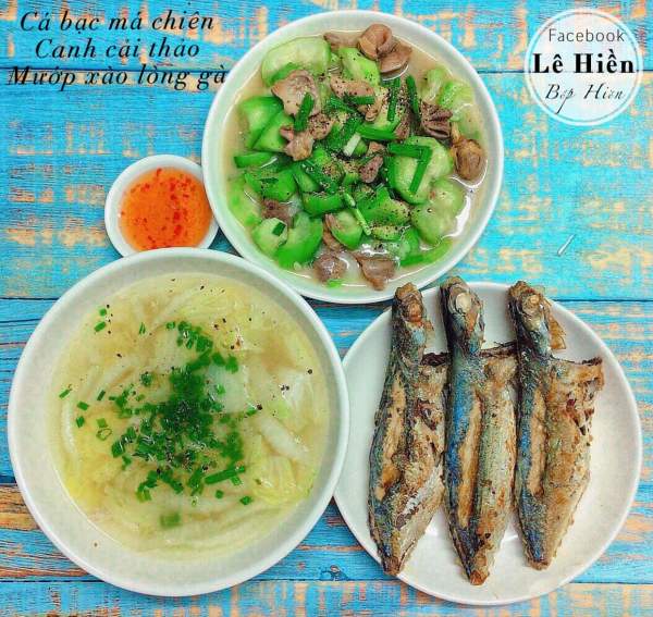 Cá bạc má chiên - Canh cải thảo - Mướp xào lòng gà