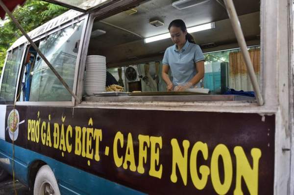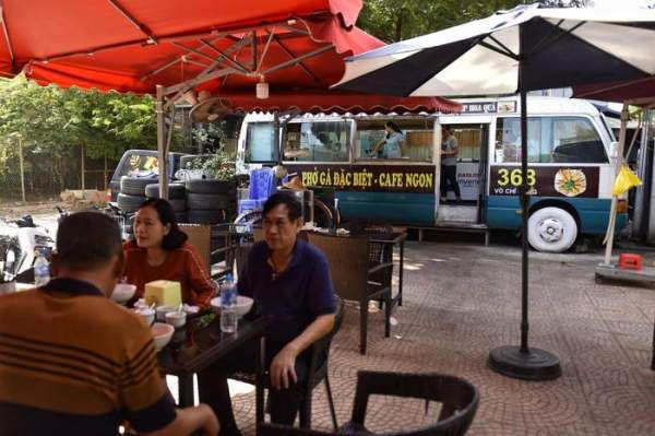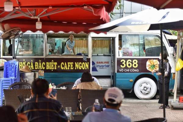 Chủ quán phở - chị Tạ Thị Thu Huyền cho biết: “Tôi từng kinh doanh nhà hàng, nhưng sau thời gian dịch bệnh Covid-19 kinh tế gặp nhiều khó khăn. Vì vậy, nhà hàng phải đóng cửa nên vợ chồng tôi nảy ra ý tưởng mua một chiếc xe khách về làm chỗ bán phở gà”.