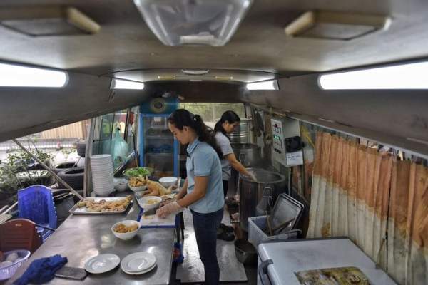 Dù làm việc trong không gian khá chật hẹp, nhưng trên chiếc xe cũng có đầy đủ các thiết bị để có thể nấu ăn.