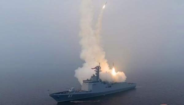 Tàu khu trục lớp Choe Hyon của Triều Tiên trong cuộc tập trận bắn đạn thật vào tháng 3/2026. Ảnh: MW.
