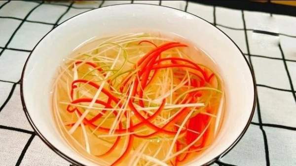 Gừng, hành lá, ớt đỏ rửa sạch rồi thái sợi rồi đem ngâm với nước sạch.