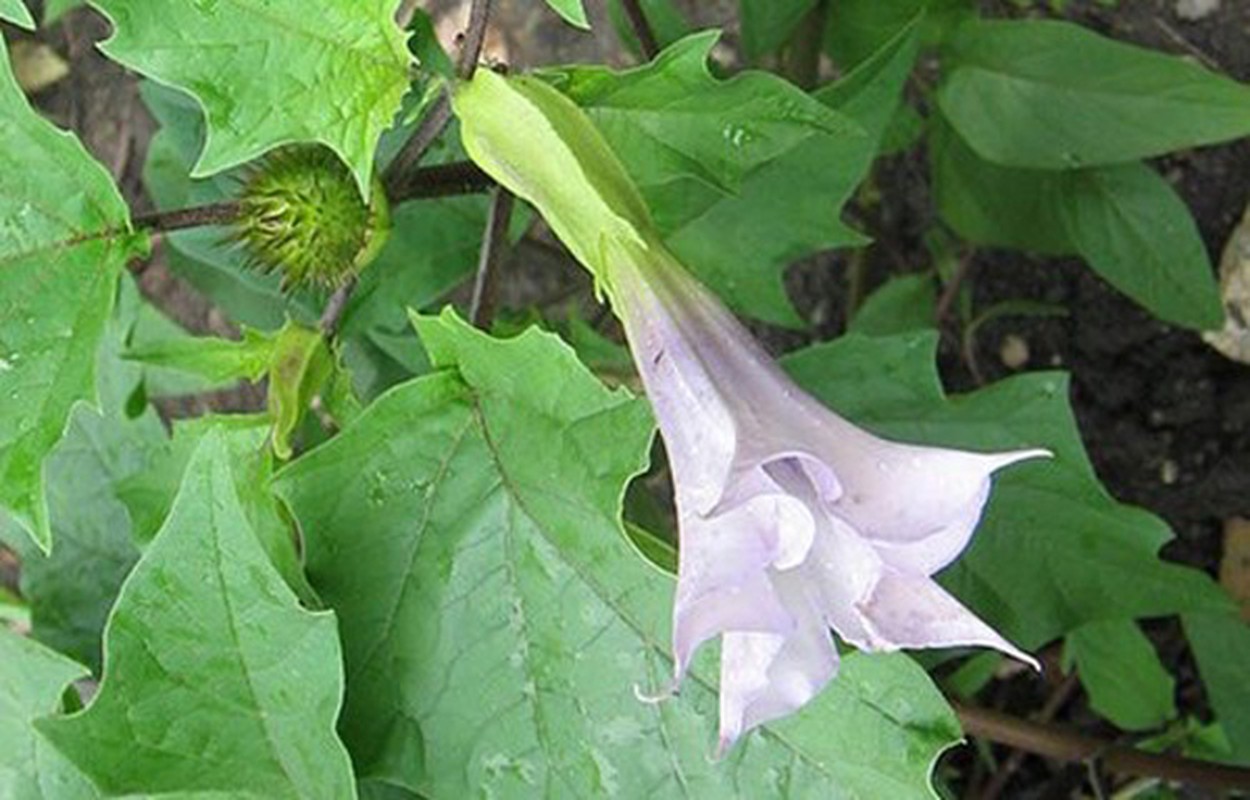 5. Cây cảnh: Cà độc dược. Đây là loài cây cảnh thân thảo, có tên gọi khác là mạn đà la, tên khoa học là Datura metel, thuộc họ Cà. Cây cảnh này rất đẹp nhưng toàn thân đều có độc, nếu ăn phải sẽ bị ngộ độc, thậm chí trong trường nặng còn dẫn đến hôn mê, co giật, tử vong sau 24 giờ.