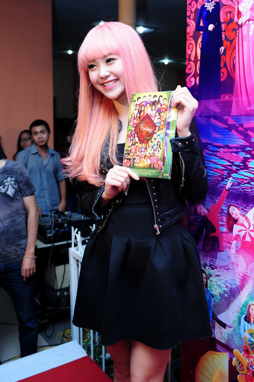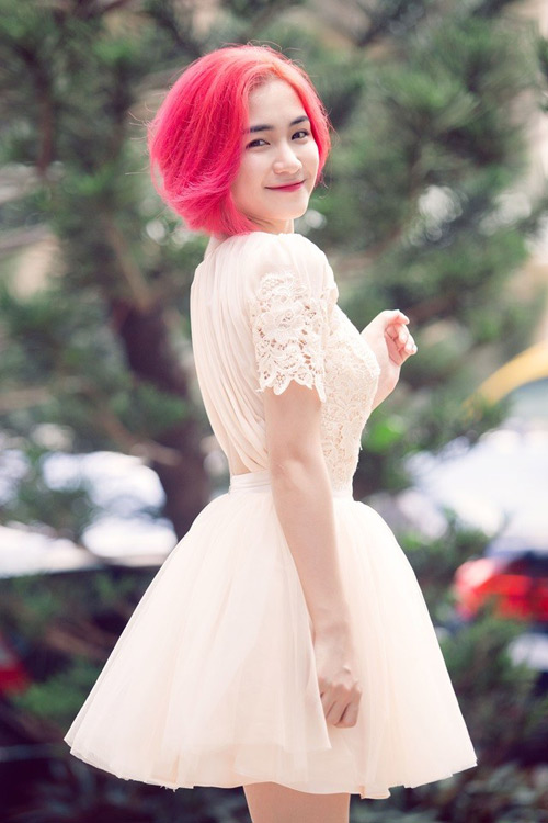 Minh Hằng nổi bật với màu tóc hồng ấn tượng, màu tóc này khiến cô nàng nhìn trẻ trung và năng động hơn.