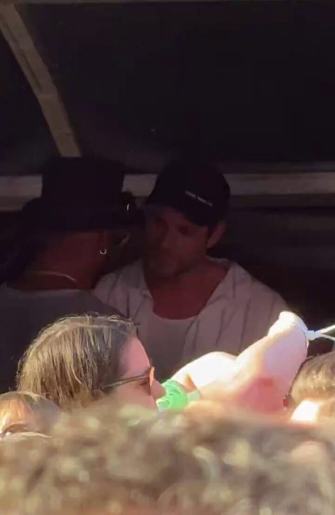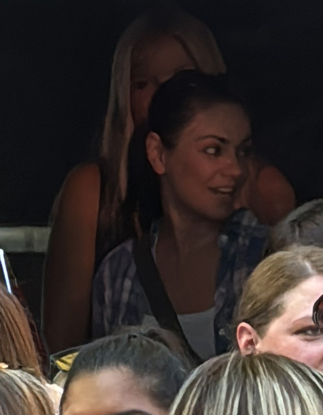 Sang đêm diễn thứ 2 vào 22/6, người hâm mộ phát hiện thêm nhiều ngôi sao khác có mặt ở hàng ghế khán giả. Diễn viên Mỹ Mila Kunis cùng chồng, tài tử Ashton Kutcher, bay chặng đường xa đến London ủng hộ Taylor. Ảnh: X.