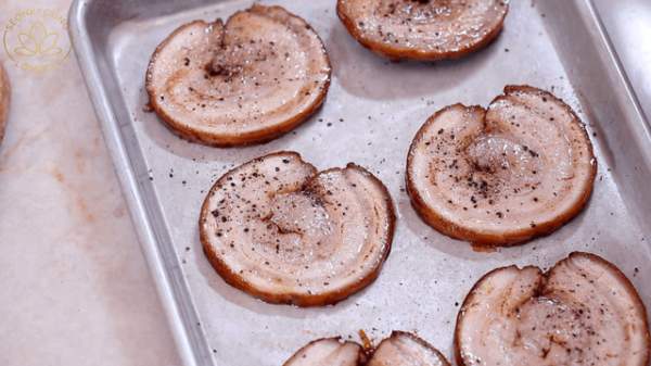 Chú ý: Nếu không có bước này, thịt lợn sẽ không giữ được hình dạng khi cắt lát.
