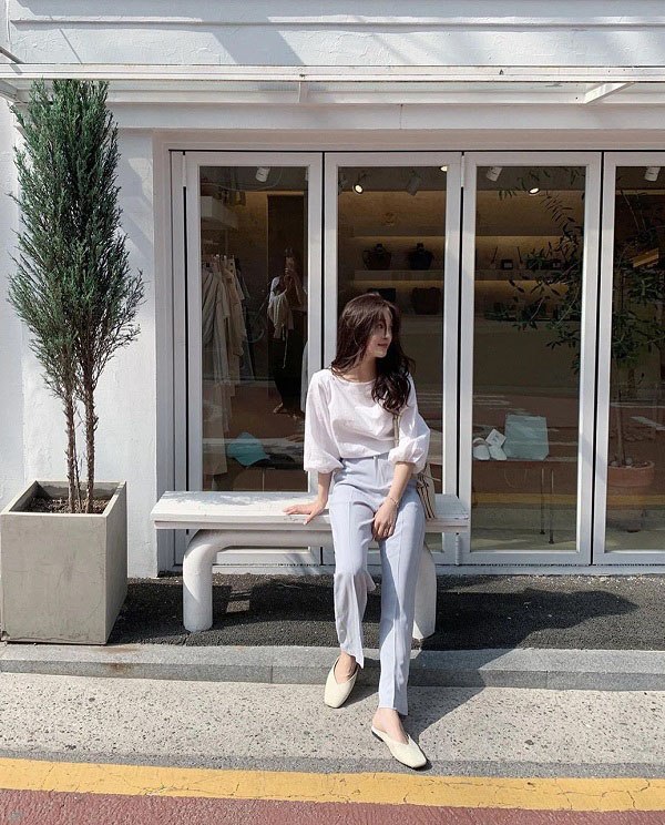 Các nàng có thể cân nhắc mix giày với quần theo kiểu ton-sur-ton màu trắng.