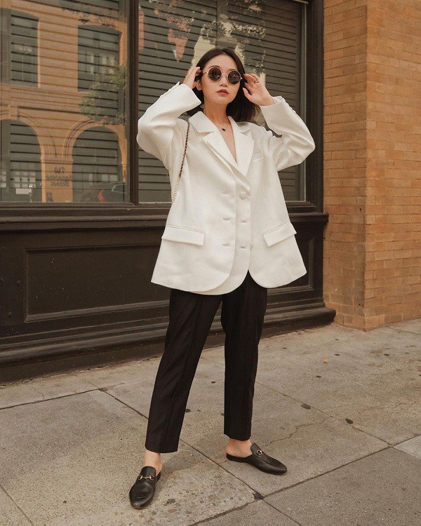 Các cô gái mix giày loafer với quần âu là ghi điểm tuyệt đối trong mắt những người xung quanh.