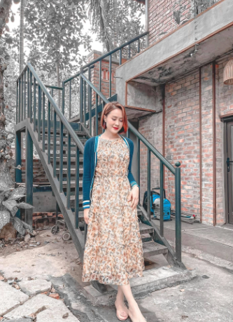 Mẫu váy dáng dài, phủ họa tiết hoa hợp với những quý cô trên 30 tuổi. Vào những ngày se lạnh, bạn có thể khoác ngoài một chiếc cardigan mỏng, item này đủ ấm áp mà vẫn đảm bảo sự duyên dáng cho tổng thể.