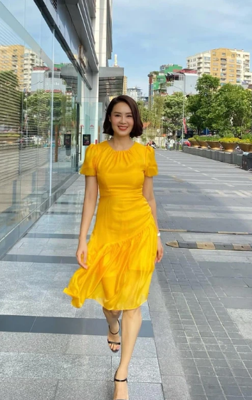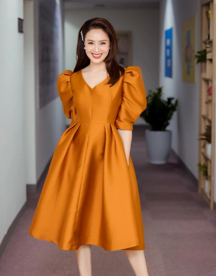 Diện mẫu váy liền tay "siêu bồng", Hồng Diễm có ngay vẻ ngoài đầy sang chảnh, đài các. Hồng Diễm chỉ đi một đôi giày cao gót đơn giản là đẹp, lại đảm bảo sự hài hòa cho tổng thể.