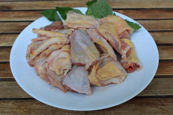 Thịt gà được chặt thành từng miếng vừa ăn, sau đó đem đi tẩm ướp gia vị. (Ảnh minh họa)
