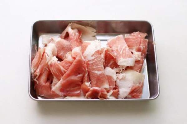 Thịt sơ chế sạch sau đó thái lát mỏng.