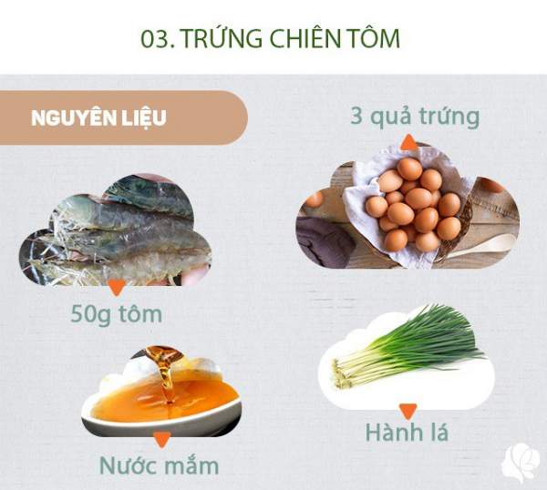 Chuẩn bị: - Trứng vịt: 3 quả - Tôm 50g - Hành lá, muối, nước mắm, bột nêm, tiêu, dầu ăn.