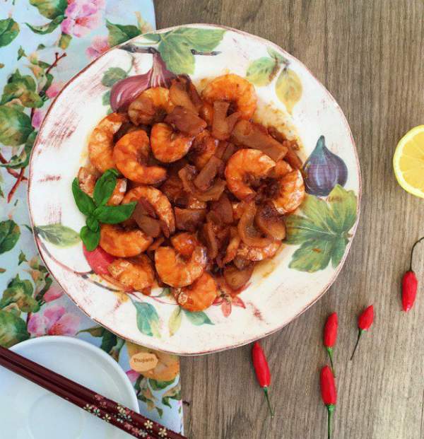 Tôm sơ chế rửa sạch sẽ, thịt nhiều mỡ thái miếng mỏng vừa. Ướp tôm cùng sa tế, nước mắm, đường và hành củ thái hạt lựu rồi trộn đều các gia vị hoà quyện cùng tôm và ướp trong 20 -30phut. Thịt rang cháy cạnh cho thơm vàng sau đó ta cho tôm đã ướp gia vị và sa tế vào và rim khoảng 20 phút đến khi tôm chuyển màu đỏ hồng là được, tắt bếp và nêm thêm chút mì chính (tùy ý) là xong.