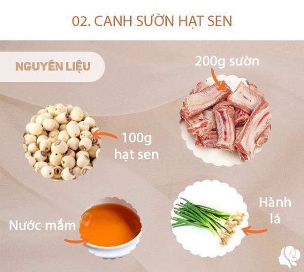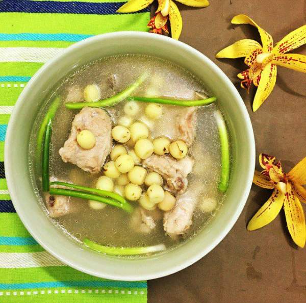 Chuẩn bị: 200gr sườn, 100gr hạt sen, 2 thìa nhỏ nước mắm, 1 nhánh hành lá, 1,5- 2 lít nước và 1 thìa mì chính nếu thích.