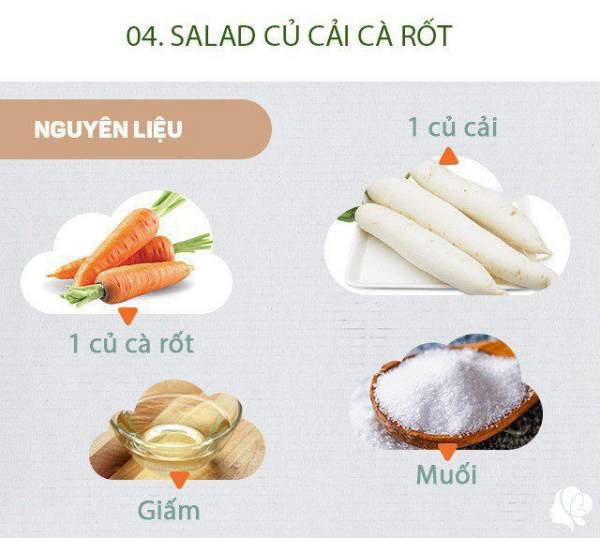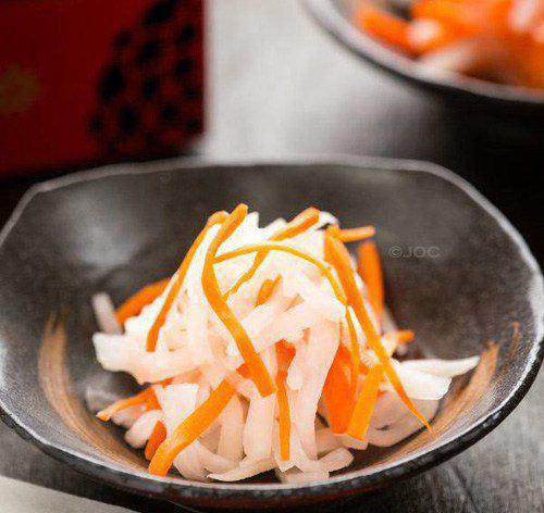 Trong một bát khác, trộn đều các nguyên liệu gia vị. Bóp củ cải, cà rốt cho ra bớt nước sau đó cho hỗn hợp này ra một bát riêng. Đổ hỗn hợp gia vị vào, trộn đều. Giờ bạn có thể thưởng thức ngay salad củ cải cà rốt hoặc để lạnh trước khi thưởng thức! Làm nhiều nên bạn có thể chia bữa ăn dần.
