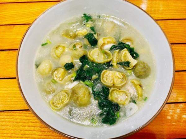 Tách từng lá rau cải chíp ra, đem rửa và ngâm trong nước 15 phút rồi vớt ra, rửa lại cho sạch 1 lần nữa. Nấm cắt bỏ chân, đem rửa sạch rồi đun trong nước 5 phút. Sau khi đun xong, vớt nấm và rửa với nước cho nguội, vắt nấm cho ra hết nước, dùng dao thái lát mỏng.