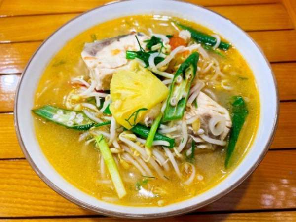 Chuẩn bị: 300g cá trắm, 1/2 quả dứa, 100g đậu bắp, 100g giá đỗ, 2 quả cà chua, hành lá, thì lá, hành khô, rau ngổ, mắm, muối, gia vị, gừng