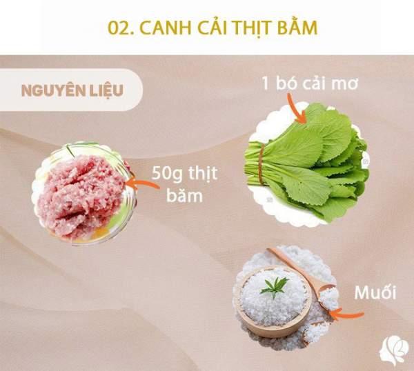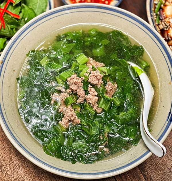 Chuẩn bị: 1 bó cải, 50g thịt băm, chút muối, 1 mẩu gừng băm nhỏ.