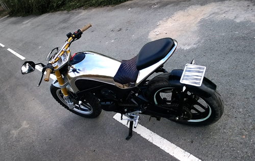 Chiếc nakedbike cỡ nhỏ được thiết kế lại hoàn toàn với ý tưởng mang xu hướng cổ điển pha chút hiện đại. Tổng thể là một đường cong lớn uyển chuyển từ bình xăng nối liền lạc tới đuôi xe được gò thủ công. Quá trình tạo hình và hoàn thành trong gần 2 tháng.