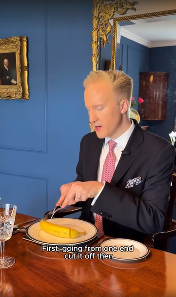 Ảnh chụp từ Video Hanson hướng dẫn cách ăn chuối đúng cách bằng dao nĩa. Nguồn: @WilliamHanson