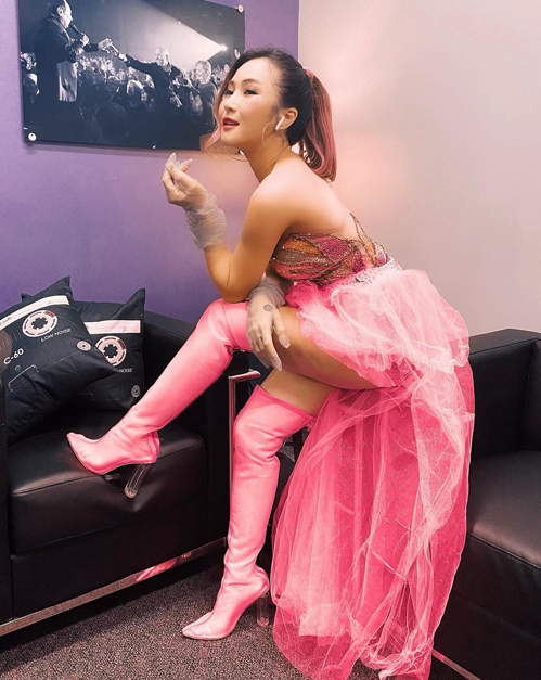 Nữ ca sĩ thường xuyên diện đầm voan, tulle xếp layer cầu kỳ, phối cùng boots cao đến đùi và găng tay tạo vẻ cổ điển. Giọng ca gốc Nghệ An còn thay đổi diện mạo với mái tóc hồng sặc sỡ.