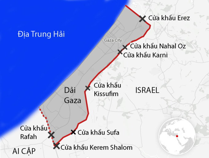 Vị trí cửa khẩu Rafah và Kerem Shalom. Đồ họa: datawrapper