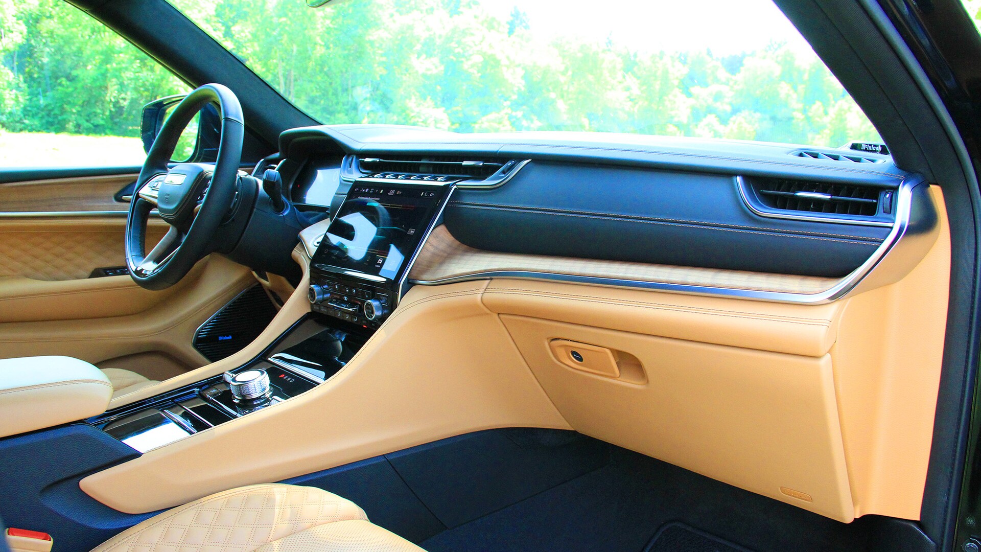 Sự thay đổi lớn trên Grand Cherokee L là nội thất. Mẫu xe này có tới 3 hàng ghế và 7 chỗ ngồi, có tuỳ chọn 6 ghế (bản Summit Reserved). Khoang cabin có thiết kế hiện đại. Sau vô-lăng là một màn hình lớn 10,25 inch. Màn hình trung tâm tuỳ chọn kích thước 8,4 inch hoặc 10,1 inch, hỗ trợ Apple CarPlay/Android Auto không dây. Hệ thống âm thanh vòm cao cấp McIntosh 950 watt. Cần số đổi sang dạng núm xoay giống trên các mẫu xe Land Rover.